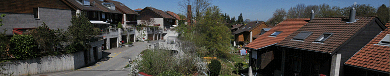 Unsere Siedlung liegt am nördlichen Dorfrand von Kehrsatz diekt neben Wabern und am Rande der Naherholungsgebiete von Gurten und Belpmoos. Auf einem Areal von 17'870 m2 entstanden zwischen 1986 und 1989 50 Reiheneinfamilienhäuser in 10 Blöcken. Bestens erschlossen mit Postauto und Zug. Die Haltestelle Kehrsatz-Nord der Gürbetallinien S3 und S31 liegt nur 7 Fuss- minuten und die Haltestelle Kehrsatz-Rössli der Postautolinie 340 Wabern - Niedermuhlern nur 5 Fussminuten von der Siedlung weg.
